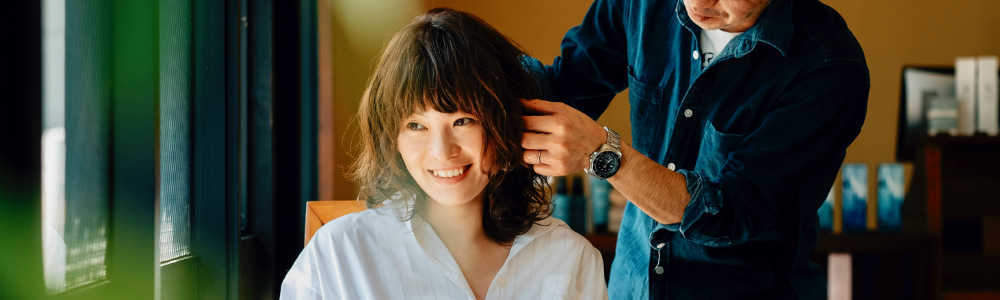 もう一つ、お客様が家でも簡単にお手入れが出来るスタイル作りにこだわります。美容室で綺麗でも家で出来なければ、素敵なスタイルも台無しです。そのためお客様の髪質、クセ、骨格をしっかり見極めた上でのカット、普段のお手入れ方法にあわせた、お手入れが楽チンなヘアスタイルを提案させて頂きます。そしてしっかりとお手入れ方法もお伝えしていきます。